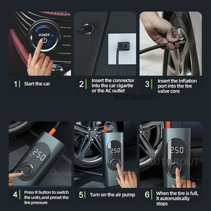Accessories: 3 air nozzles, inflatable tube, Type-C charging cable, cigarette lighter wire